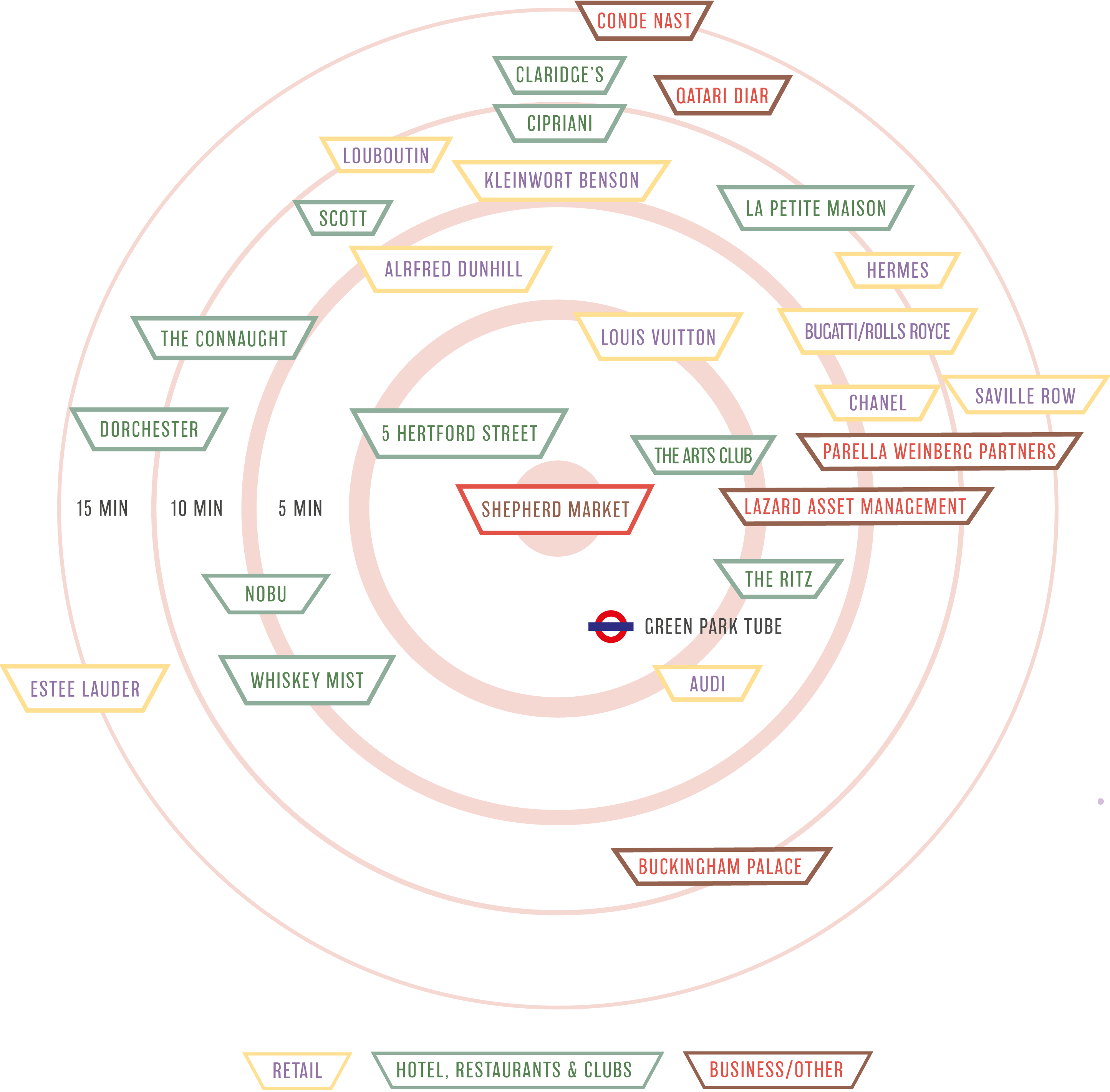 Many global enterprises are nearby Including Perella Weinberg Partners, Kleinwort Benson, BlueBay Asset Management, Qatari Diar, Blackstone, Condé Nast, Lazard and Estée Lauder.
